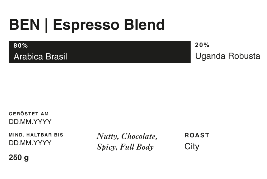 Der Röstgrad ist bei Ben etwas höher als üblich für uns damit er seinen würzigen Charakter und vollen Körper bekommt, auch in Kombination mit Milch.